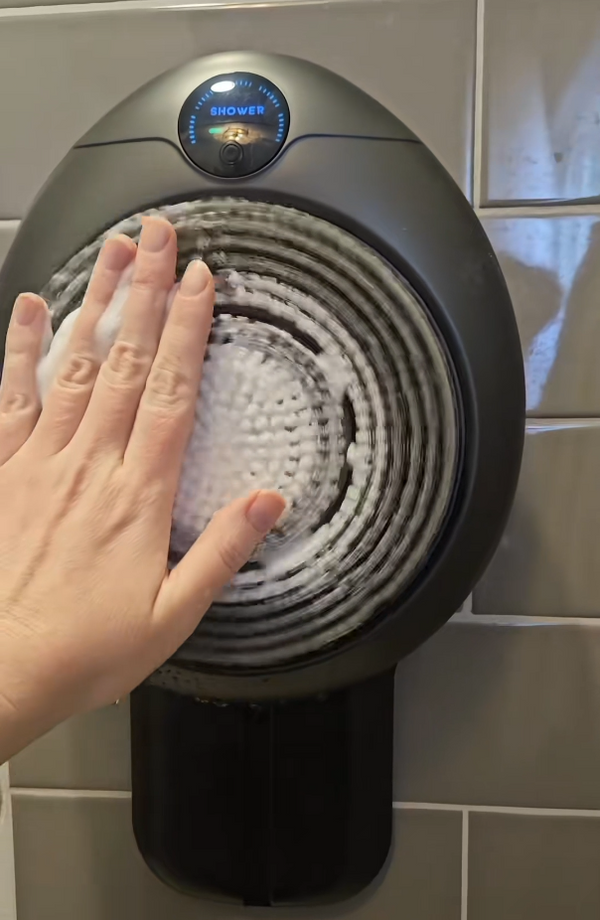 Gently lean into the scrubber and move your body up and down to clean your back.